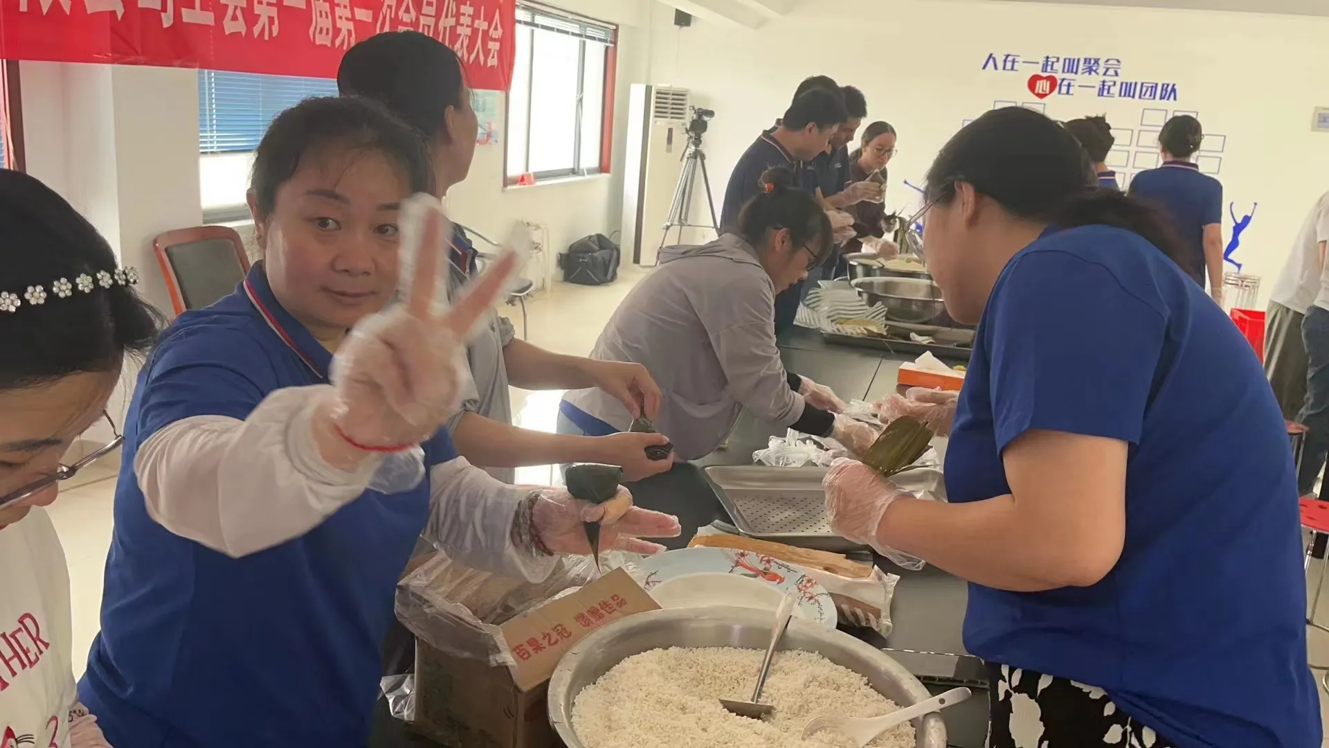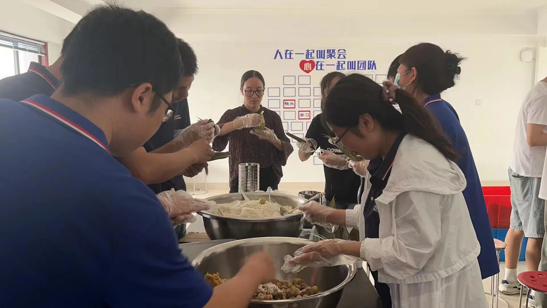 En el sitio de la actividad, el arroz glutinoso, las hojas de bola de arroz y el relleno de bola de arroz, que se habían empapado de antemano, ya estaban sobre la mesa. Todos se reunieron y mostraron sus habilidades, acariciando las hojas de zongzi, formando un embudo, llenando arroz glutinoso, presionando, sellando y atando, un trozo de fragantes hojas de zongzi, un grano de cristal de arroz glutinoso, bajo un par de manos hábiles, se convirtió instantáneamente en un zongzi de diferentes formas. Colegas sin experiencia, con la ayuda de colegas, mientras aprendían y observaban, también dominaron gradualmente las habilidades de envolver zongzi. Todo el sitio de actividades es alegre y armonioso.